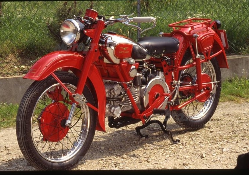 La Guzzi aveva sempre avuto nelle monocilindriche di 500 cm3 uno dei suoi punti di forza e subito dopo la guerra ha ripreso la loro fabbricazione, affiancandola a quella delle motoleggere utilitarie, destinate a larga diffusione. Solo per poco tempo però sono rimasti in listino i modelli d’anteguerra con testa e cilindro in ghisa. Nel 1949 ha provveduto a sostituirli l’Astore, con bilancieri e molle delle valvole in bagno d’olio, all’interno di una nuova testa in lega di alluminio. Pure il cilindro era ora in tale materiale, con canna in ghisa riportata. Le misure di alesaggio e corsa erano le classiche Guzzi (88 x 82 mm) e l’architettura complessiva del motore, dotato del tipico volano esterno, rimaneva invariata. Con un rapporto di compressione di 5,5, la potenza era di 18,9 CV a 4300 giri/min.