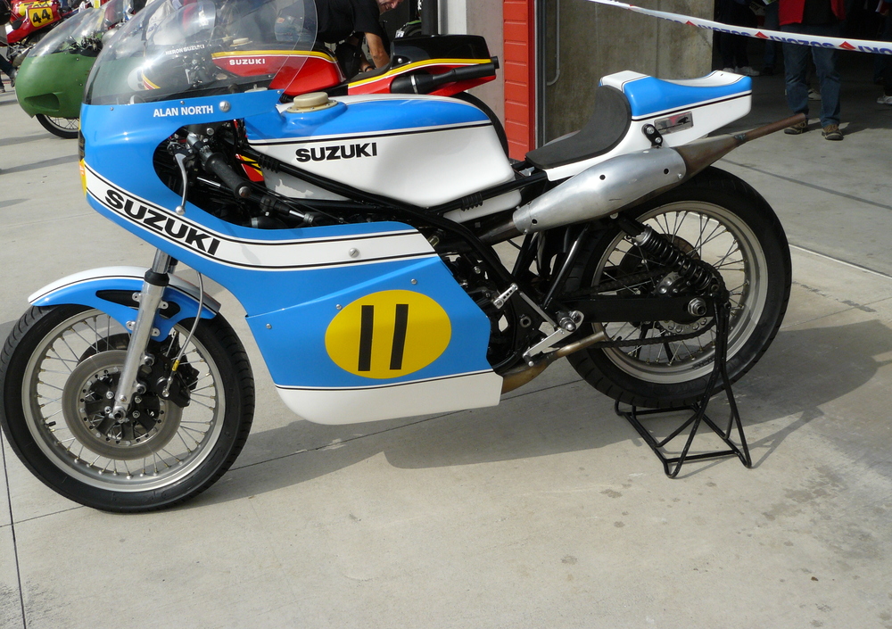 La Suzuki però credeva fortemente nelle scelte di base che avevano portato alla sua realizzazione e per questo motivo quando ha deciso di tornare alla attività agonistica in veste ufficiale, nella prima metà degli anni Settanta, ha scelto questa stessa architettura per la sua nuova 500. Tale soluzione consente di disporre i quattro dischi rotanti lateralmente, cosa impossibile con i cilindri in linea, e di realizzare un motore largo come un bicilindrico (la lunghezza era però ben maggiore…).
