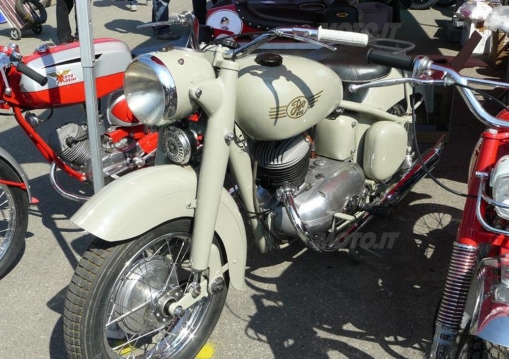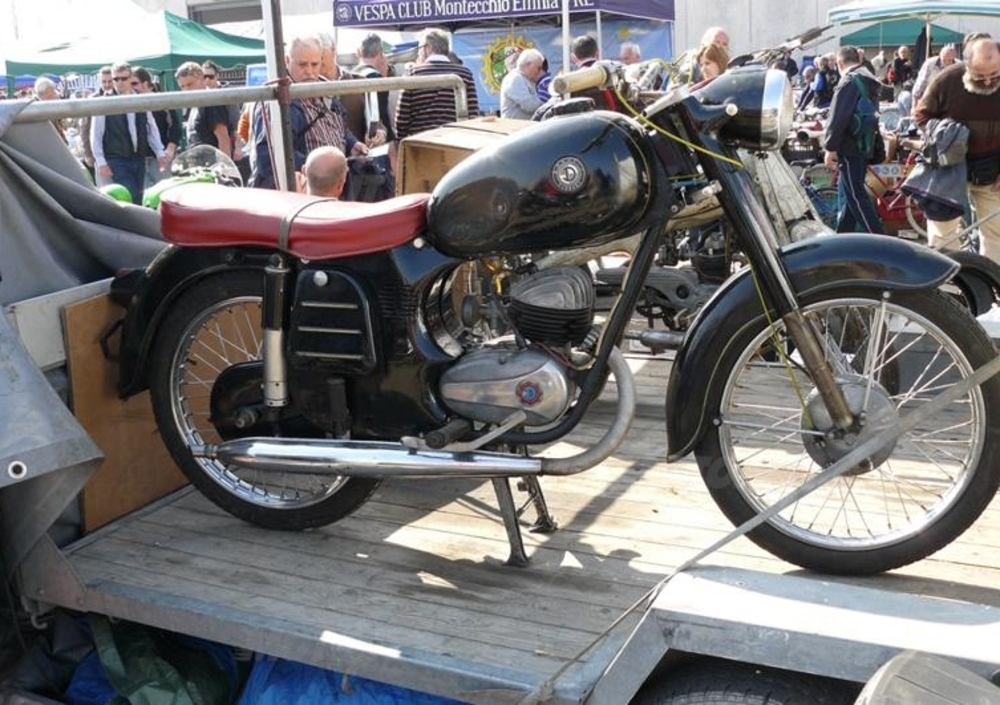 Tra le moto stradali di maggior pregio avvistate a Reggio, vanno segnalate alcune splendide tedesche, come una impeccabile Zundapp K 800 a quattro cilindri degli anni Trenta e una bellissima e altamente desiderabile BMW R 69 S degli anni Sessanta, che alcuni ritengono la migliore bicilindrica mai prodotta dalla Casa bavarese. Purtroppo le quotazioni sono elevate, in questi casi, ma si tratta di modelli che hanno fatto la storia (e che in futuro diventerà sempre più difficile trovare…). Per quanto riguarda le italiane degli anni Cinquanta, con un poco di pazienza un Mondial interessante si può ancora trovare. E infatti a Reggio c’era un 200 telescopico conservato che meritava davvero una particolare attenzione. Notevole la presenza delle Rumi e delle MotoBi bicilindriche a due tempi e significativa anche quella di una rara Benelli Leonessa. Una bellissima Motom 98, capolavoro a suo tempo incompreso dell’ing. Remor, è stata venduta a un appassionato spagnolo. Niente male anche un Delfino, con raffreddamento forzato, della stessa Casa milanese, e decisamente saporite (e rare) una Iso 200 e una Capriolo Cento50 bicilindrica boxer. Insomma, non si può dire che i pezzi significativi mancassero…