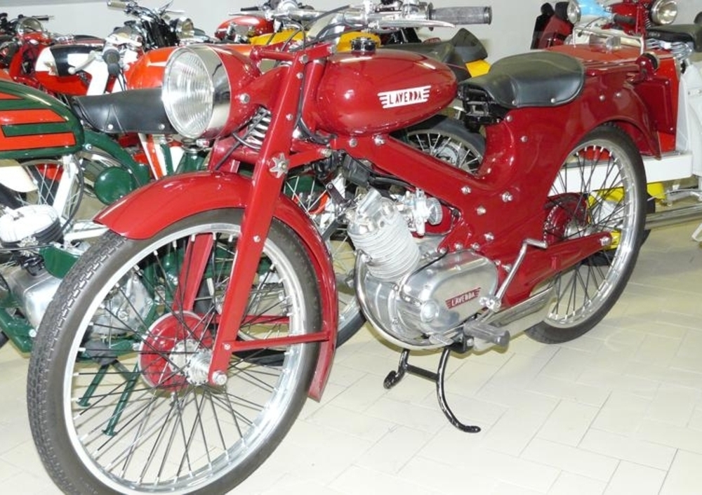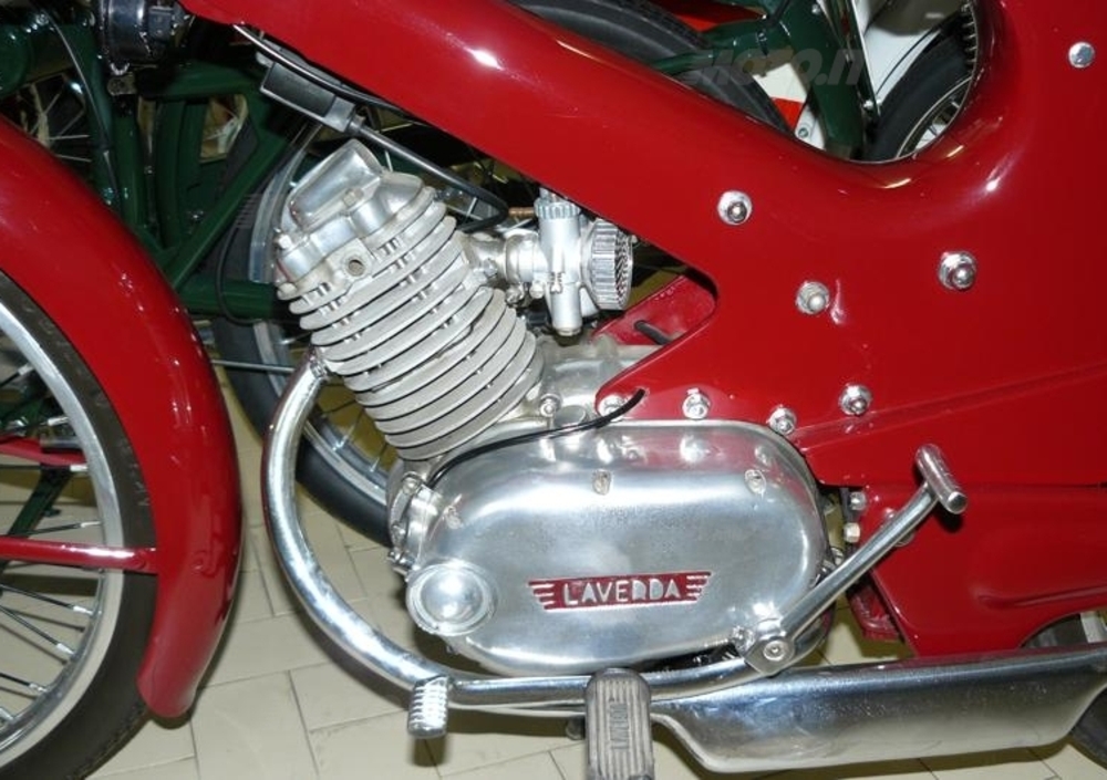 La Laverda era da tempo nota e apprezzata in campo meccanico per la sua produzione di macchine agricole quando ha fatto la sua comparsa nel settore motociclistico con una 75 a quattro tempi di ottima fattura, entrata in produzione nel 1950. Questa prima motoleggera, dovuta a Francesco Laverda e a Luciano Zen, pur essendo destinata ad avere un’ampia diffusione come veicolo pratico ed economico, destinato all’impiego di tutti i giorni, dal punto di vista tecnico era di eccellente livello, studiata com’era senza compromessi e realizzata senza economie. La distribuzione era ad aste e bilancieri, con due alberi a camme nel basamento (uno subito davanti e uno subito dietro la base del cilindro). Il cilindro era in lega di alluminio con canna in ghisa. La trasmissione primaria era a ingranaggi e il cambio a tre marce. L’interessante telaio era in lamiera stampata, a trave singola di rilevante sezione.
