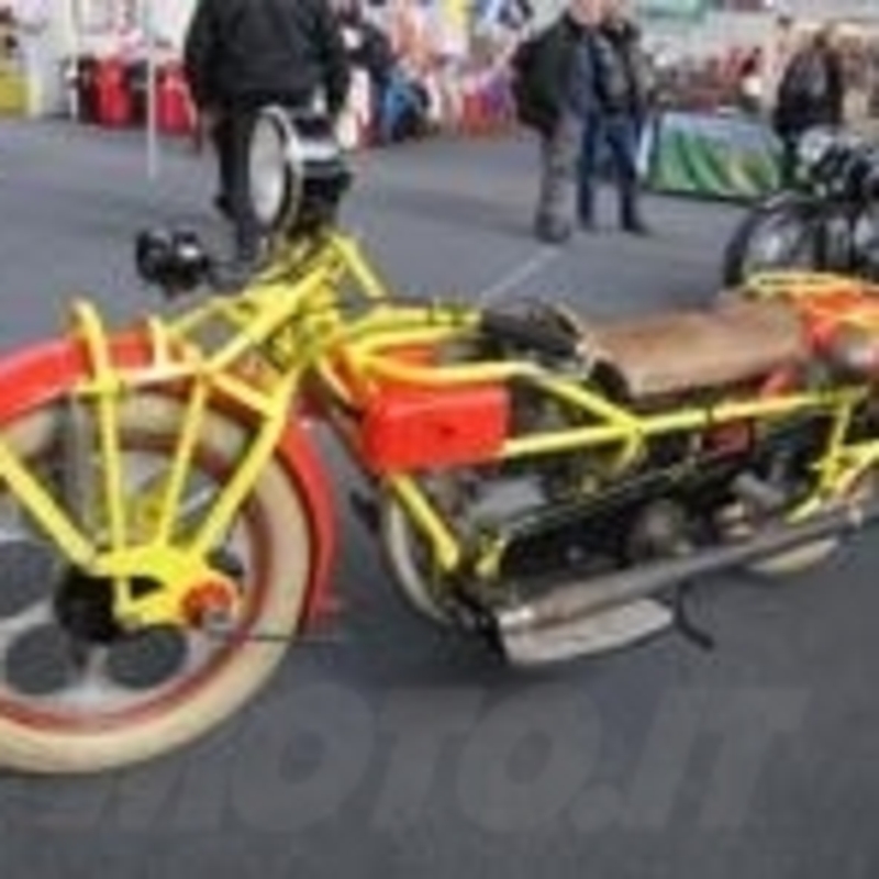 Molto rara e pregevole anche la tedesca Megola, con motore stellare a cinque cilindri installato all’interno della ruota anteriore. Questo schema costruttivo richiama alla mente certi motori d’aviazione della prima guerra mondiale, nei quali il basamento e i cilindri giravano mentre l’albero rimaneva fermo. Naturalmente di frizione e di cambio, non è neanche il caso di parlare… Progettata da Fritz Cockerell, questa moto di 640 cm3 (alesaggio e corsa = 52 x 60 mm) è stata costruita a Monaco dal 1921 al 1925 in circa 2000 esemplari.