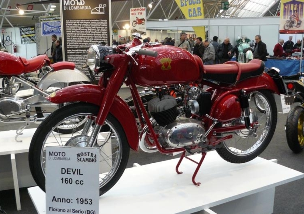 Le moto Devil erano fabbricate dalla OCMA (Officine Costruzioni Martinelli) di Fiorano al Serio, alle porte di Bergamo. Il grosso della produzione, che è andata avanti dal 1953 al 1958, era costituito da modelli a due tempi di 125 e di 160 cm3. Si trattava di monocilindrici ben realizzati, ai quali la casa tentò anche di aggiungere una 175 a quattro tempi, caratterizzata da una curiosa distribuzione ad aste incrociate, progettata da William Soncini e rimasta allo stadio di prototipo. Alla manifestazione milanese era presente un esemplare impeccabile della 160 del 1953, dotata di una ciclistica molto evoluta per i tempi. Il motore aveva un alesaggio di 58 mm e una corsa di 60 mm ed erogava circa 8 cavalli a 5400 giri/min. Di questo modello esisteva anche una versione preparata per impiego agonistico che disponeva di 12 CV a 7000 giri/min.