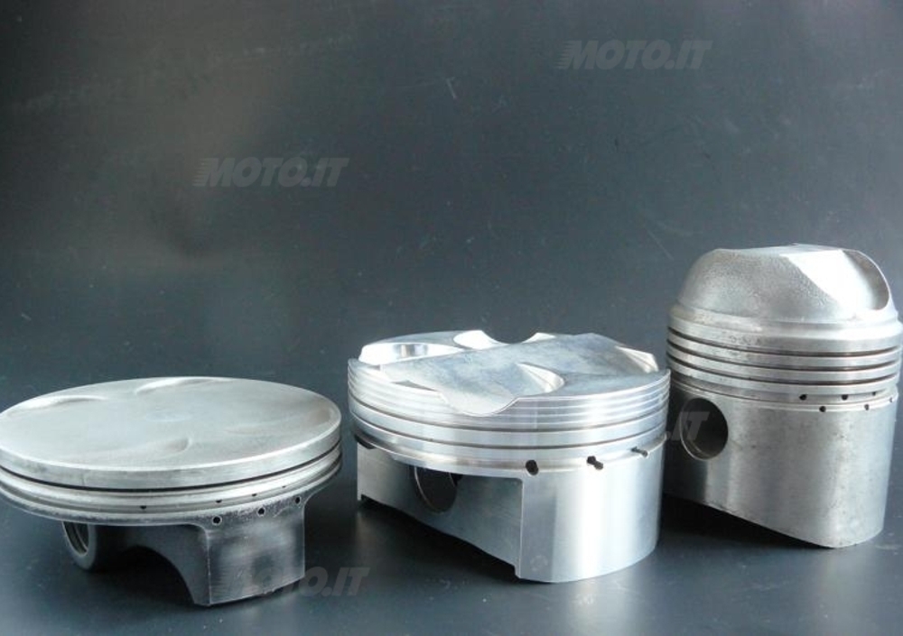 Pochi organi meccanici sono stati oggetto di cambiamenti geometrici e dimensionali analoghi a quelli che negli ultimi tempi hanno interessato i pistoni. Questo sviluppo è avvenuto perché le case motociclistiche si sono impegnate per decenni in una vera e propria corsa verso prestazioni sempre più elevate. I motori di serie hanno così raggiunto potenze specifiche via via maggiori e i regimi di rotazione sono cresciuti in misura impressionante. Ciò ha portato logicamente a sollecitazioni sempre superiori. Le forze in gioco, dovute tanto alla pressione dei gas quanto all’inerzia, sono diventate altissime. Inoltre la quantità di calore che viene assorbita dai pistoni nell’unità di tempo, e che quindi passa attraverso le loro pareti metalliche, è cresciuta essa pure, raggiungendo valori non immaginabili in precedenza. È stato pertanto necessario sviluppare questi organi meccanici in modo da renderli in grado non solo di sopportare impunemente gli stress in questione, assicurando una affidabilità assoluta, ma anche di lavorare perfettamente per decine e decine di migliaia di chilometri. Mica facile.