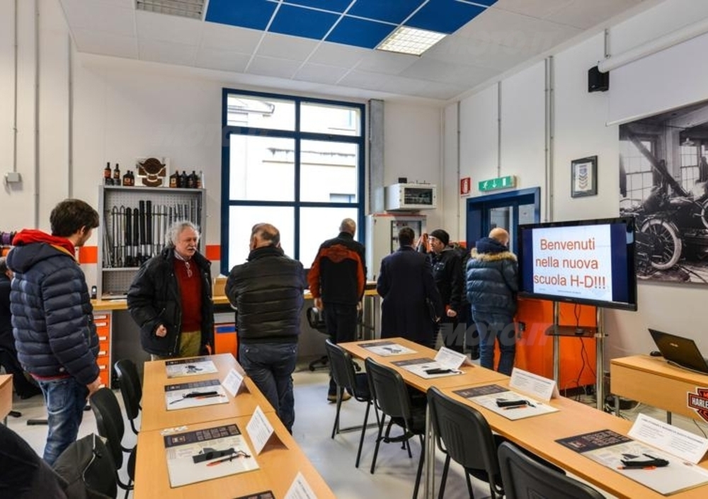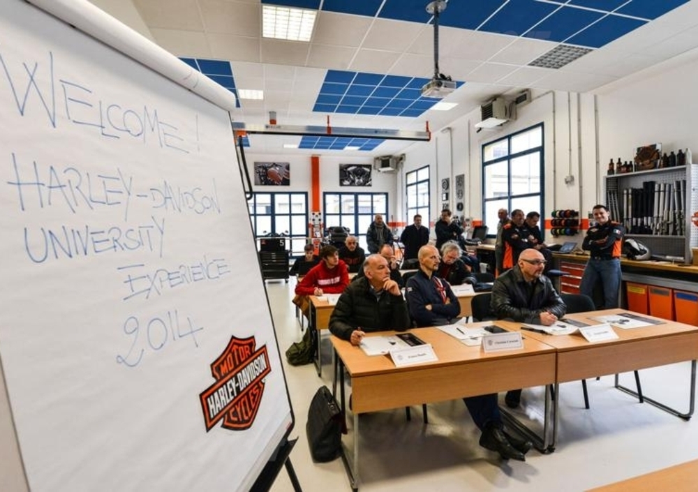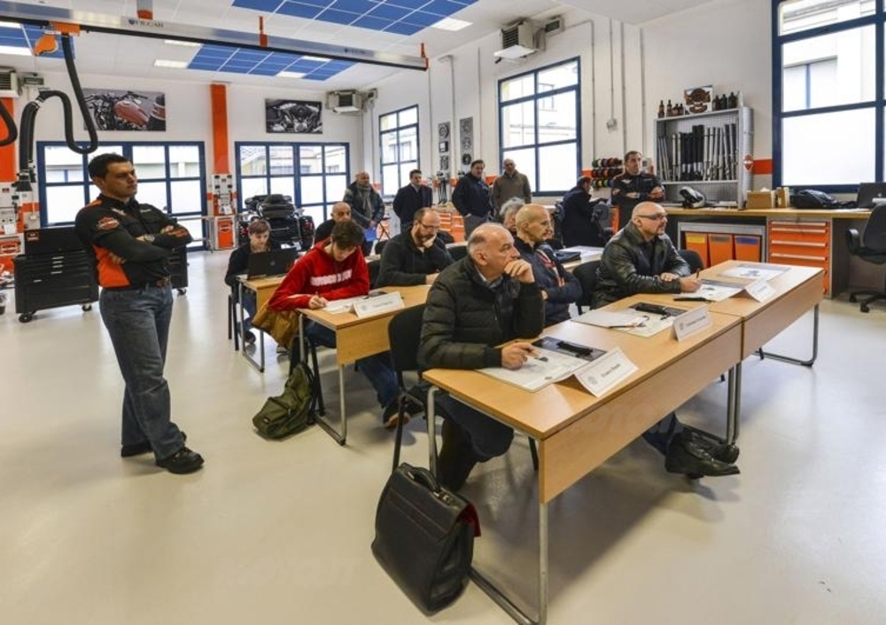Con corsi tanto teorici quanto pratici, che si svolgono su vari livelli, la casa di Milwaukee va incontro alle esigenze sempre maggiori che l’avanzamento della tecnica motociclistica comporta. L’obiettivo è quello di preparare una rete di professionisti di alto livello e di competenza estrema e quindi in grado di assicurare la massima qualità del servizio. La durata dei diversi corsi va da uno a quattro giorni; al termine di ognuno di essi i partecipanti devono superare un esame e una serie di test. Ciò consentirà loro di passare al livello successivo (quelli previsti sono cinque: staff, technician, advanced technician, expert e master). Oltre al rilascio di un attestato, chi ha partecipato con successo a ciascun corso riceve una dichiarazione, riportata nello speciale “passaporto” che viene consegnato a ogni meccanico della rete, indicante il grado di preparazione raggiunto. La scuola dispone degli strumenti di analisi e di diagnosi più evoluti, al cui impiego è dedicata una congrua parte della attività didattica.