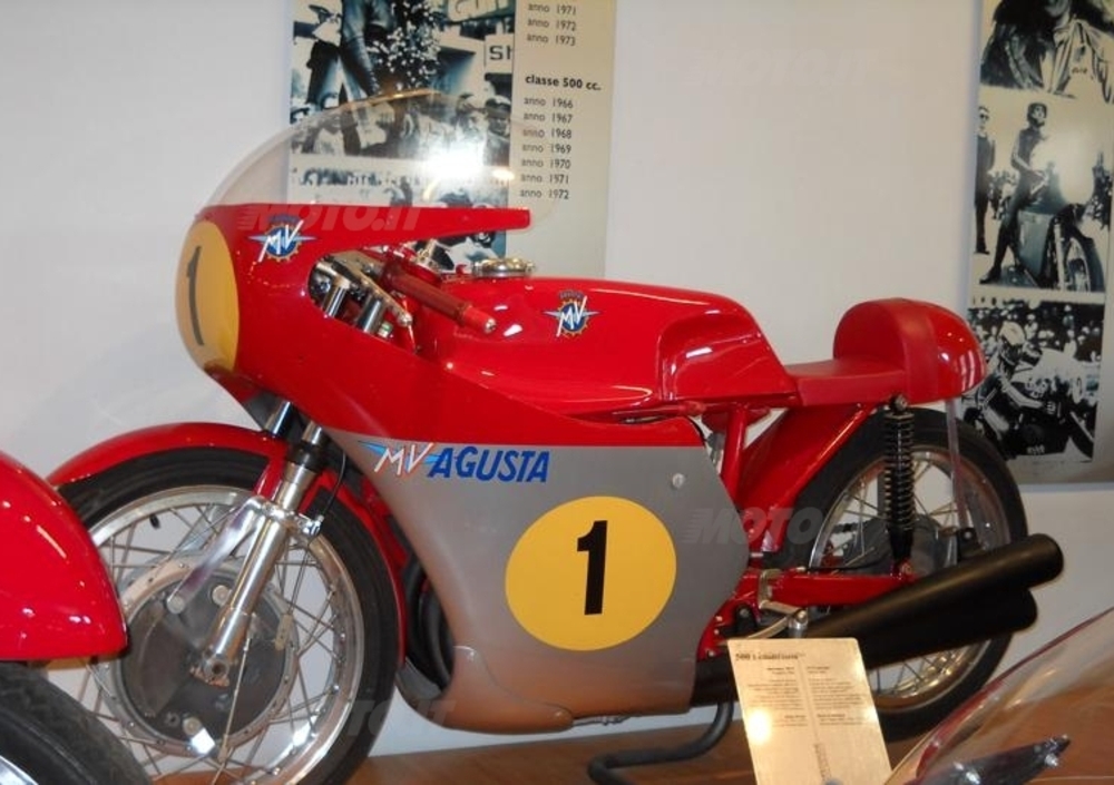 Il grande ritorno dei tricilindrici in linea a quattro tempi si è avuto nel 1965 con la MV Agusta 350 da GP, della quale è stata ricavata l’anno successivo una 500 di architettura assolutamente analoga. Queste moto formidabili sono entrate nella leggenda grazie agli straordinari successi ottenuti da Giacomo Agostini, che le ha portate alla vittoria in ben 12 campionati mondiali piloti (5 ottenuti con la 350 e 7 con la 500). La 500 aveva un alesaggio di 60,5 mm e una corsa di 57 mm. La potenza, inizialmente di circa 78 cavalli a 11.600 giri, è cresciuta nel corso degli anni; nel 1970 era dell’ordine di 83 cv a 12.500 giri. Tra le particolarità tecniche di maggiore spicco vanno ricordate le quattro valvole per cilindro, disposte su due piani inclinati tra loro di 44°, la distribuzione bialbero comandata da una cascata di ingranaggi piazzata lateralmente e l’impiego di calotte in bronzo, installate con interferenza nella testa, in corrispondenza delle camere di combustione. L’albero a gomiti composito, che come logico nei tricilindrici poggiava su quattro supporti di banco, lavorava interamente su cuscinetti a rotolamento.