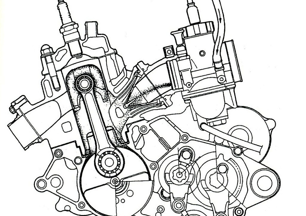 Fin dai loro primi impieghi in campo motociclistico, all’inizio del Novecento, nei motori a due tempi il controllo dell’aspirazione è stato pressoché invariabilmente affidato al pistone, il quale apriva o chiudeva l’estremità del condotto, proveniente dal carburatore, che sfociava nella parte inferiore del cilindro. Si adottava cioè il sistema con aspirazione “in terza luce”, come si diceva una volta. In questo caso durante la corsa verso il punto morto superiore il mantello del pistone scopre la luce di ammissione, consentendo il passaggio della miscela aria-benzina, che viene richiamata dalla depressione creatasi nella camera di manovella. Durante la discesa del pistone verso il punto morto inferiore, il mantello fa il contrario, chiudendo la luce e impedendo quindi il passaggio dei gas. Continuando la discesa del pistone, la miscela intrappolata nella camera di manovella viene precompressa; a un certo punto il margine del cielo del pistone stesso scopre le luci di travaso e la miscela fresca può fare il suo ingresso nella parte superiore del cilindro. Il pistone quindi si comporta come un vero e proprio otturatore.