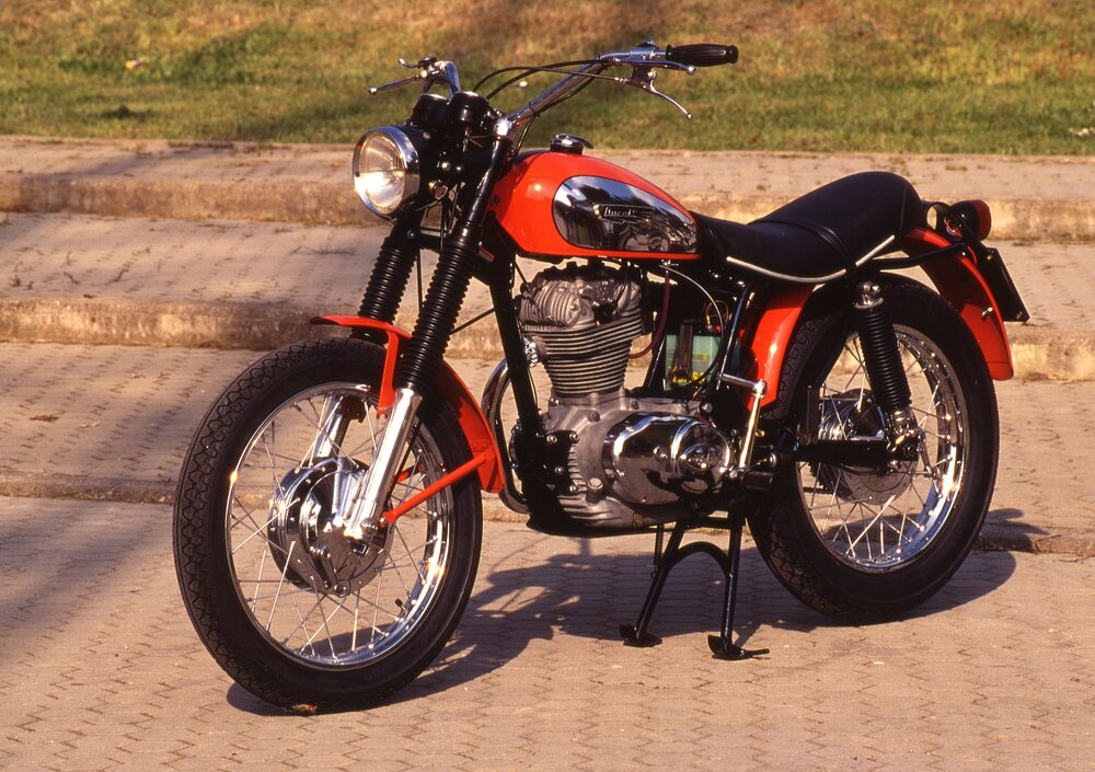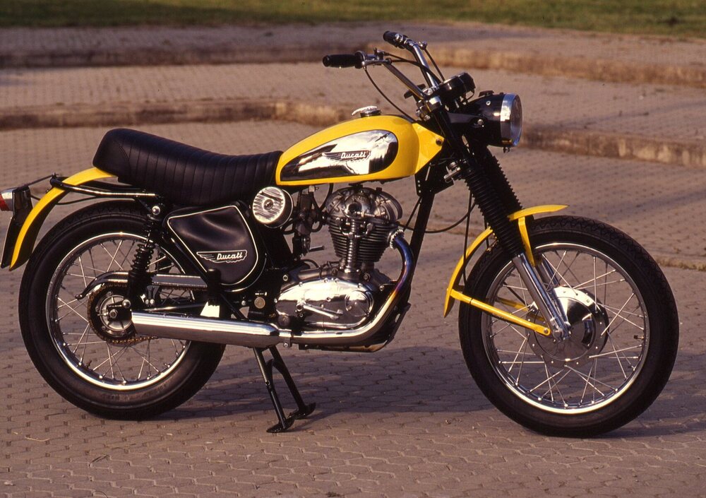 Grande classico della migliore scuola italiana e formidabile protagonista dei primi anni Settanta, lo Scrambler ha le sue origini nelle prime moto da fuoristrada realizzate a Borgo Panigale. Si trattava di alcune 175 che in Italia erano destinate ad impiego crossistico e dalle quali è stata subito ricavata una versione destinata al mercato USA, dotata di faro e di targa e quindi impiegabile su strada. Ne sono state costruite pochissime, mentre la 200 Motocross (questa era la denominazione della casa) apparsa a pochi mesi di distanza è stata prodotta in numeri che cominciavano ad essere interessanti. Questo modello era destinato fondamentalmente al mercato nordamericano, che stava diventando sempre più interessante per la casa bolognese, grazie al dinamismo dell’importatore Berliner, che disponeva di grandi mezzi e di una valida rete commerciale. La successiva 250 Scrambler, commercializzata a partire dal 1962, è nata proprio in seguito a una sua specifica richiesta. Si trattava di una moto che oggi verrebbe definita enduro stradale. Il faro e l’impianto elettrico potevano essere rimossi agevolmente per impiegarla in gare sullo sterrato o nel deserto. Il serbatoio aveva una forma tondeggiante e una colorazione azzurro e argento.