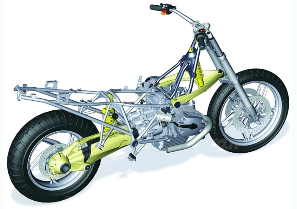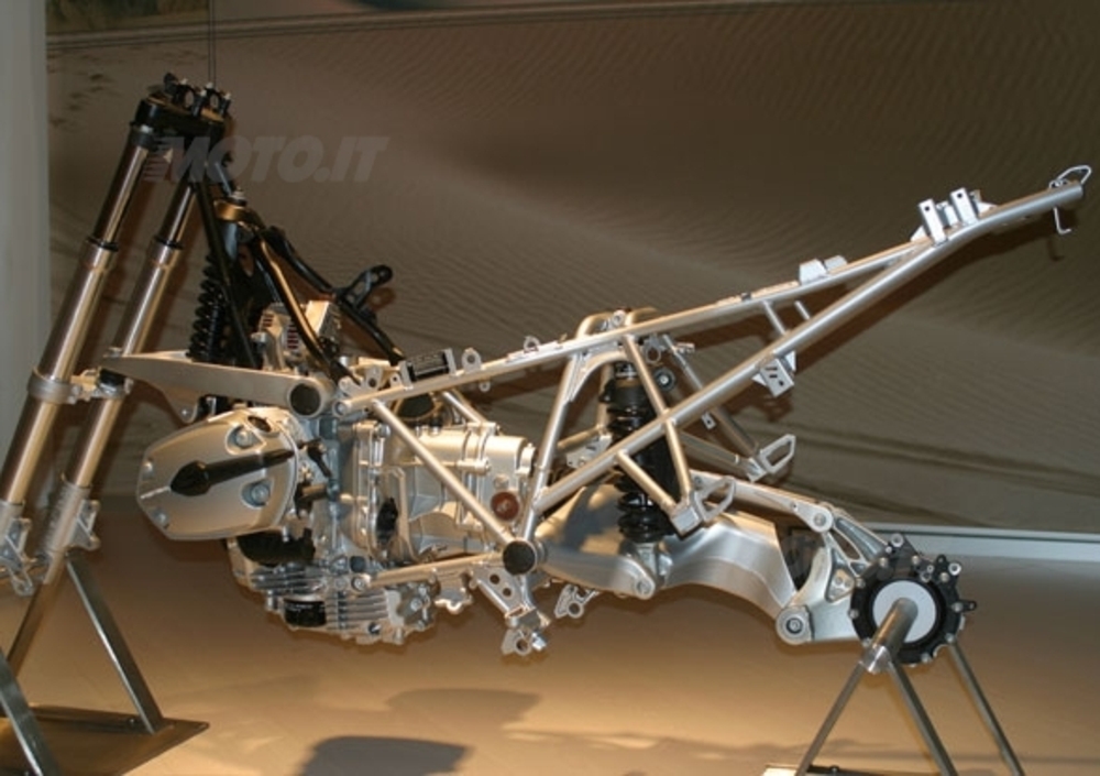 All’inizio degli anni Ottanta la BMW ha messo in produzione le sue moto a tre e quattro cilindri della serie K, con il motore a sogliola che unitamente al cambio sostituiva la parte inferiore del telaio. La Casa bavarese si stava interessando a soluzioni di ciclistica che vedevano il motore sempre più coinvolto, e ciò è stato confermato dalla successiva comparsa delle nuove bicilindriche boxer a quattro valvole, nelle quali i bracci oscillanti delle sospensioni anteriore e posteriore (Telelever e Paralever) erano direttamente fulcrati nel gruppo motore-cambio; quest’ultimo era stato studiato sin dall’origine con l’obiettivo di potere svolgere non solo tale funzione, ma anche di poter sostituire completamente il telaio. Al basamento erano semplicemente imbullonati un telaietto anteriore di supporto del cruscotto e della testa di sterzo e un telaietto posteriore che supportava la sella. Un telaio vero e proprio non c’era. Più o meno nello stesso periodo, nelle gare della Battle of the Twins correva in pista la Britten, nella quale il grosso motore bicilindrico era portante.