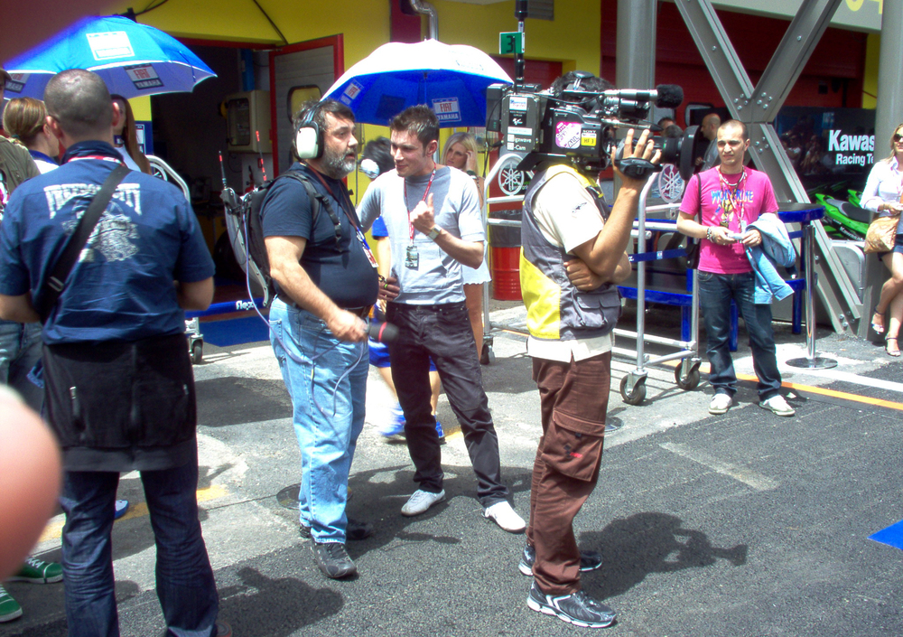 «L'ho incontrato la prima volta durante una gara. Un ragazzo di Brescia che lavora nell'hospitality mi fece entrare nel paddock. Era il 2008 e ho avuto la possibilità di conoscere tutta la squadra di Rossi. Quando poi mi sono presentato a Valentino lui è stato davvero molto gentile: abbiamo scambiato qualche battuta, ha riso e ha fatto una dedica su una foto mia. La seconda volta che l'ho rincontrato è stato in occasione della registrazione del Chiambretti Night (varietà condotto da Piero Chiambretti e trasmesso prima da Italia1 e poi da canale 5 tra il 2009 e il 2011, NDR). Rossi in quell'occasione è stato davvero bravissimo. Io ero emozionatissimo ma lui mi ha sostenuto e sul palco mi passava la palla. Pur non ricordandosi del nostro primo incontro mi ha messo davvero a mio agio. Quando poi ho cominciato ad imitarlo gli sono piaciuto da subito e a metà della gag mi ha messo la mano sulla spalla. In quel monento, quando ci siamo guardati negli occhi, mi ha dato una carica pazzesca.