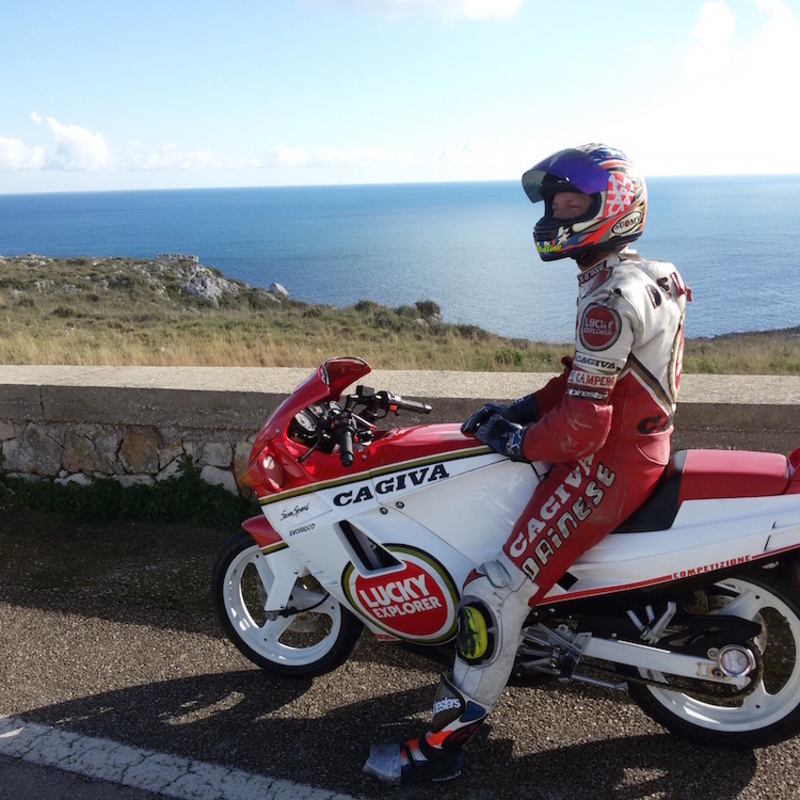 «Ho ricordi infiniti, belli e brutti. Brutti se analizzo quello che facevamo a quel tempo, a 16 anni. Mio padre fu così bravo e gentile da acquistarmi la moto a Febbraio, quando avevo 15 anni (16 li avrei compiuti ad Aprile), e mi prudevano le mani in attesa di quel tanto sognato “foglio rosa”. Andavo in giro con la mia Sintesi Sport e mi sentivo un pilota fino a quando lo diventai davvero nel 1991, partecipando al Campionato Italiano Sport Production».