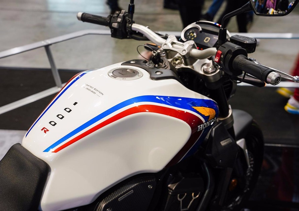 Cosa distingue questa Limited Edition dalla versione standard? Iniziamo dalla livrea tricolore con logo Honda anni 70, tutta ricoperta da un trattamento superficiale trasparente per valorizzare la colorazione. E poi diverse parti in fibra di carbonio,compreso il terminale di scarico SC-project a doppio silenziatore che sarà riservato a questa edizione, e non sarà quindi disponibile attraverso alcun canale aftermarket.