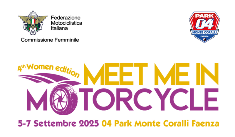 Dopo il successo delle prime tre edizioni, la Commissione Femminile FMI ha portato il quarto appuntamento con Meet Me In Motorcycle, a Faenza, precisamente allo 04Park – Monte Coralli, dove si trova anche il Centro Tecnico Federale.