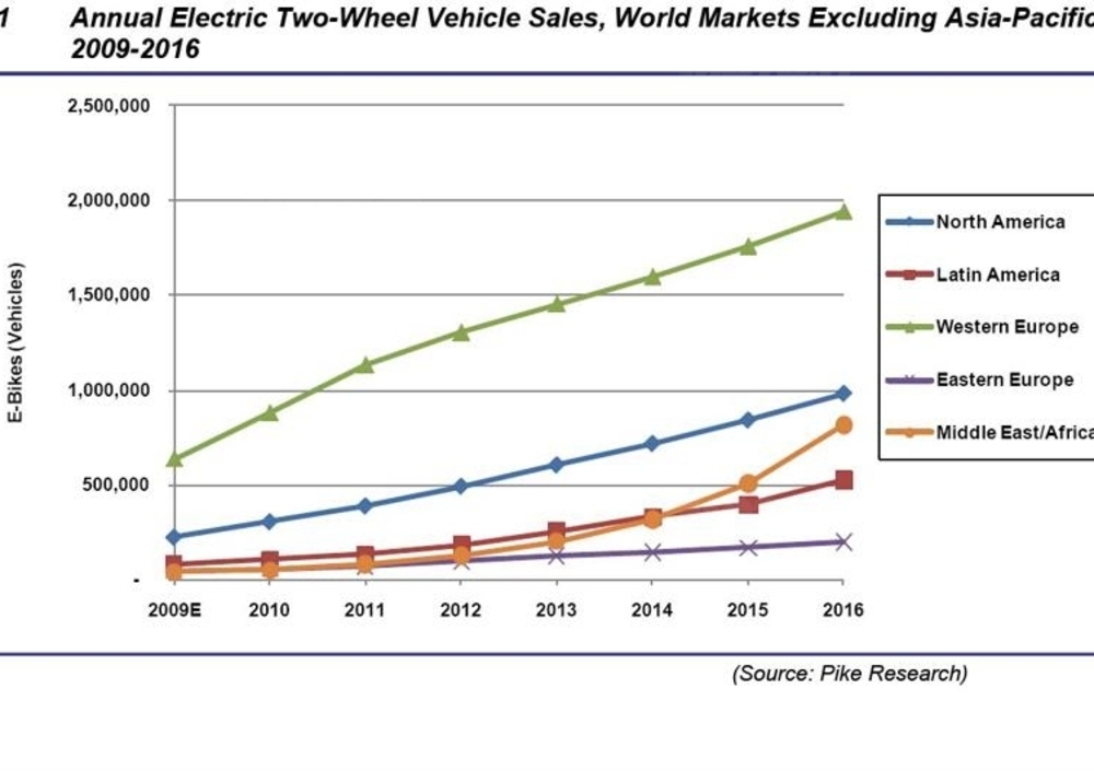 Per il mercato mondiale dei “due ruote” elettrici Pikes Research prevede una crescita annua del 9% da oggi a tutto il 2016