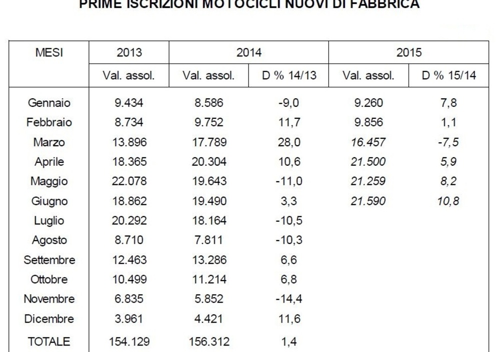 Come abbiamo scritto, a giugno il mercato del nuovo ha visto le vendite a quota 21.618 unità, ovvero +10,6% (le moto a +17% e gli scooter a +7,4%) rispetto all'anno precedente. Il primo semestre ha superato le 100.000 unità vendute con un incremento pari a +4,7%: le moto a 40.539 unità (+11,4%) e gli scooter a 59.721 (+0,6%).