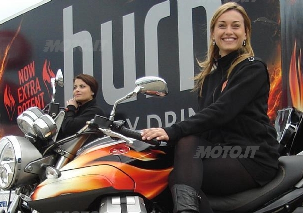 Due ragazze vestite del minimo indispensabile, pronte a lucidare moto e relativo pilota hanno intrattenuto il pubblico, mentre l'arsura causata dallo spettacolo è stata tenuta sotto controllo dalle simpatiche ragazze della Burn, che hanno distribuito ininterrottamente energy drinks a tutti i presenti.
