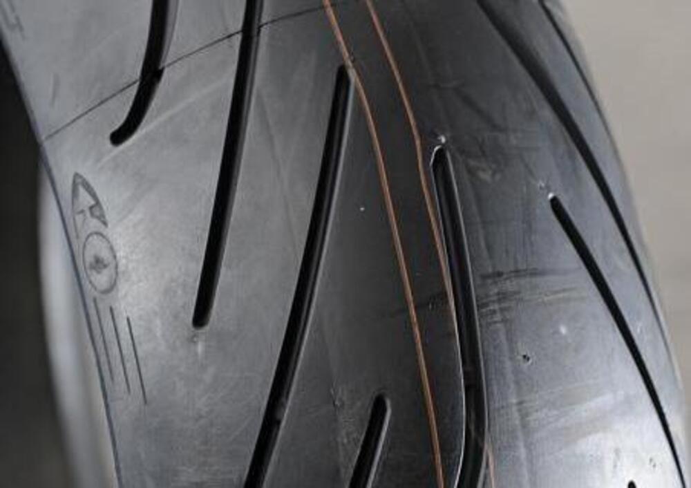 Il lavoro di sviluppo ha tenuto in particolare considerazione anche la durata e l’omogeneità di consumo del battistrada, caratteristica che ha avuto conferma dopo aver preso visione di un pneumatico posteriore con tre ore di pista sulle spalle e la cavalleria di un’Aprilia RSV4 a metterlo alla prova. L’aspetto era decisamente buono, consumo regolare e ancora tanto battistrada “da consumare”, certo non si può considerare una prova attendibile al 100%, ma la prima impressione è stata positiva.
