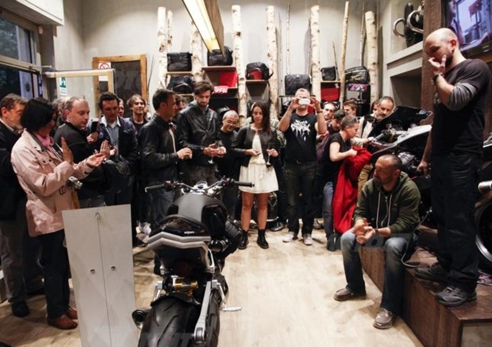 Dopo aver ricevuto riconoscimenti come Concessionaria Moto Guzzi, il negozio di Verano Brianza, che merita certamente una visita, Millepercento si lancia in una nuova avventura, aprendo in via Traù un nuovo store. Per dare maggiore enfasi all’evento, inoltre, vengono svelate le forme della nuova creatura marchiata Millepercento, che dopo la BB1 e l'Alba, presenta Scighera, una naked, che nasce in collaborazione con Filippo Barbacane titolare delle Officine Rossopuro (punto di riferimento per le special su base Moto Guzzi con sede a Pescara). Curata sotto tutti gli aspetti, sia tecnici che estetici, la Scighera, che per chi non lo sapesse è il nome con il quale viene chiamata la nebbiolina mattutina in dialetto milanese, è compatta e filante, ricca di componentistica di quella che fa venire l'acquolina in bocca agli appassionati. A farla da padrone è l'alluminio, materiale nobile con cui sono realizzati sia i cerchi a raggi e relativi mozzi (sviluppati con lo specialista Borrani), sia le piastre di sterzo, l'asta di reazione del cardano e i supporti motore. Naturalmente tutti i componenti sono realizzati dal pieno, cerchi a parte.