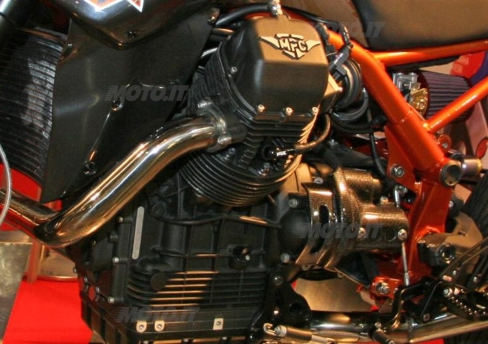 A partire dal telaio, che proviene dalla Moto Guzzi Stelvio 1200. Per finire col motore, che proprio Guzzi non è, ma che ha una parentela strettissima con i bicilindrici a V di 90° trasversali progettati dall’ingegner Carcano.
