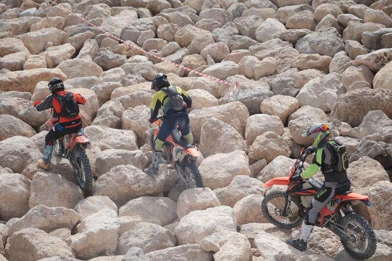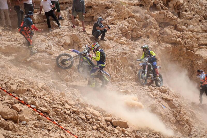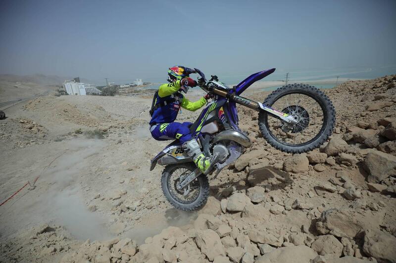 Arad, Israele, 7 Aprile 2022. Ha vinto Mario Roman, Sherco. Alt, un attimo. Facciamo un passo indietro e diamo un’occhiata allo scenario generale. Minus 400. I 400 metri sotto il livello del mare della torrida depressione del Mar Morto. Lo scenario desertico attorno è tra i più intriganti del Pianeta, un misto di inquietante serenità e di punizione imminente e inevitabile. In questa atmosfera di contorto silenzio parte la stagione 2 del Campionato del Mondo Hard Enduro. Inaugurazione preziosa del Campionato per la prima volta in Israele.