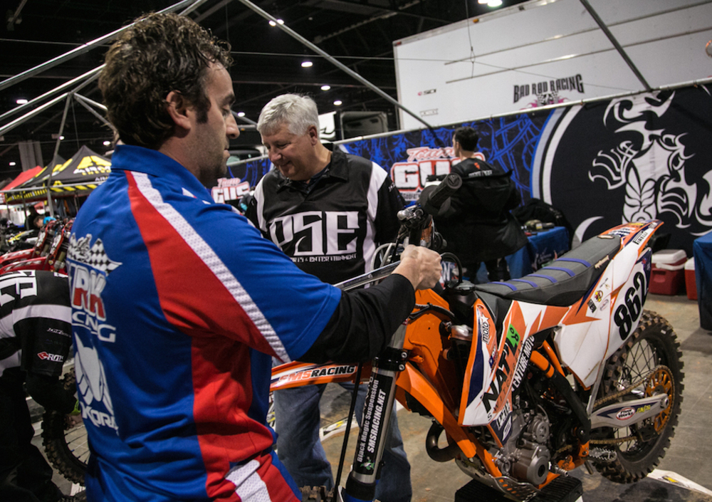«Seguo il mio pilota Ozzie Barabaree da ormai qualche anno e per lui curo sia la moto da gara che quella da allenamento. La moto da gara viaggia costantemente con il Team GUS Racing, che ce la trasporta di stadio in stadio per tutto l’anno. Il pilota paga una fee di circa 2500 dollari a stagione (classe 450 - 17 gare in tutto, NdA) e ad ogni round trova la sua moto nel paddock, piazzata su un cavalletto al centro della sua postazione di lavoro dedicata. Li trovo anche la mia cassetta degli attrezzi, che viaggia con la moto, un tavolo e due sedie».