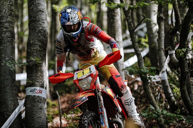 Secondo programma, la Sprint Race di sabato determina l'ordine di partenza per l'evento principale di domenica. Un'ora di Hard Enduro su una grande varietà di terreni, tra cui sentieri nella foresta, letti di fiumi disseminati di massi, salite sulla roccia e incredibili “pascoli” di sassi. Dopo quell'ora i piloti entro 15 minuti dal leader affrontano i giri dell’X-Loop, 500 metri infernali. Manuel Lettenbichler e Billy Bolt sono sempre vicinissimi, arrivano nell’ordine e andranno ad occupare di conseguenza la “griglia” di domenica.
