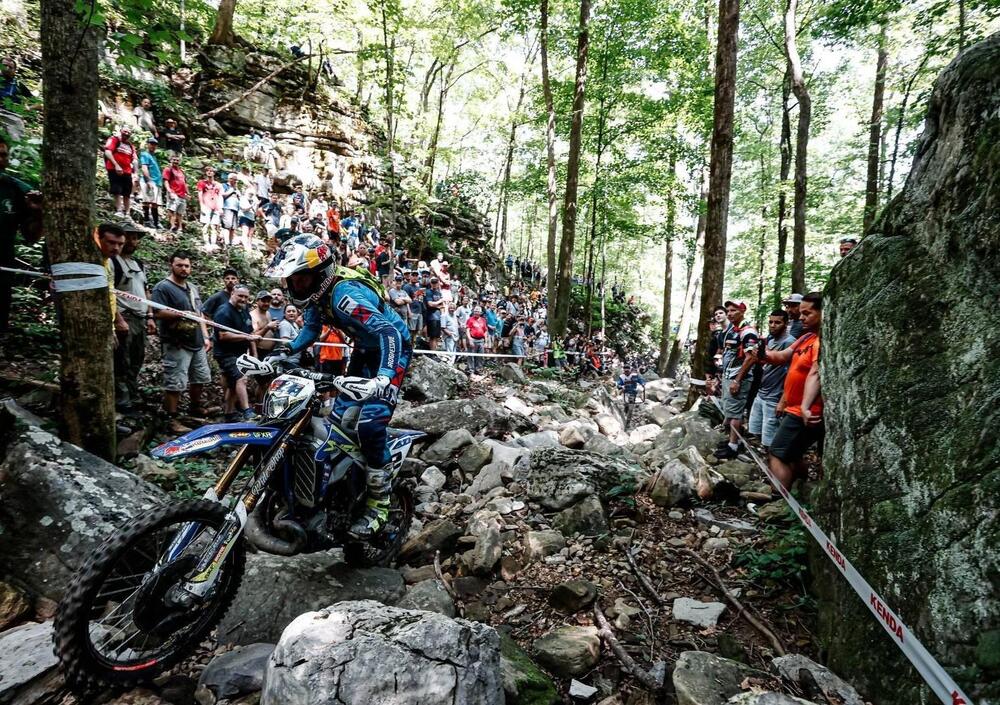 Sequatchie, USA, 15 Agosto 2022. Tristan Hart, KTM, si è ripetuto. Ha battuto Manuel Lettenbichler, KTM, e Mario Roman, Sherco, e ha vinto per la seconda volta la Red Bull Tennessee KnockOut, prova americana e sesto appuntamento del Mondiale Hard Enduro. Aveva vinto l’edizione del 2020, mentre nel 2021, primo anno del Mondiale, la gara è stata, come molti altri appuntamenti, un affare provato tra Billy Bolt e Manuel Lettenbichler. Hart è ben lontano dal record, che appartiene all’americano Cody Web con 6 vittorie, ma in questo modo irrompe definitivamente nell’élite dell’Hard Enduro.