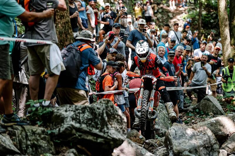 Ma lo Straight Rhythm non è altro che spettacolo preliminare, poi si fa sul serio sulle variazioni TKO dell’Hard Enduro, che culminano con le due gare del gran finale della Domenica, giornata clou dell’Evento. E da lì in poi non c’è storia, almeno per quanto riguarda il vincitore, che è apparso insindacabilmente Tristan Hart, il 25enne canadese in forza al team FMF KTM Factory Racing. Assente Billy Bolt, ormai condannato a saltare tutte le restanti prove del Campionato per l’operazione al polso, e venuto quindi a mancare il duello Bolt-Lettenbichler che ha caratterizzato l’intera prima stagione del Mondiale, di volta in volta lo schieramento frontale del Campionato si modella sull’exploit di un Pilota. Alla Red Bull Romanics è stato Graham Jarvis, Husqvarna, vincitore per la settima volta, nel Tennessee è stata la volta di Tristan Hart.