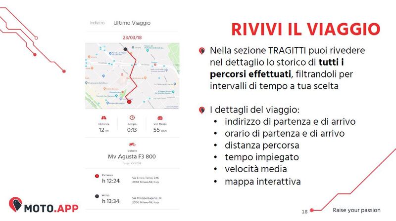 È la prima app in Italia dedicata alla sicurezza in moto. Permette di registrare tragitti, monitorare lo stile di guida, analizzare e condividere con altri appassionati informazioni e dati. E in più consente ai motociclisti di ricevere consigli personalizzati sulla base delle migliori conoscenze disponibili.