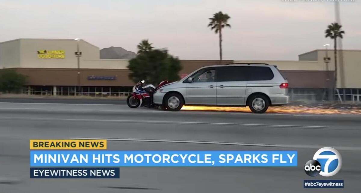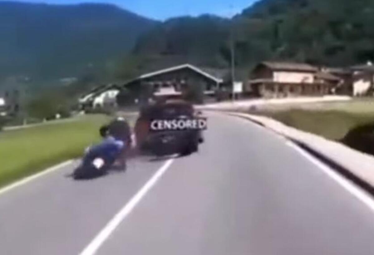 Investe un biker e fugge con la moto ancora attaccata all'auto [VIDEO])