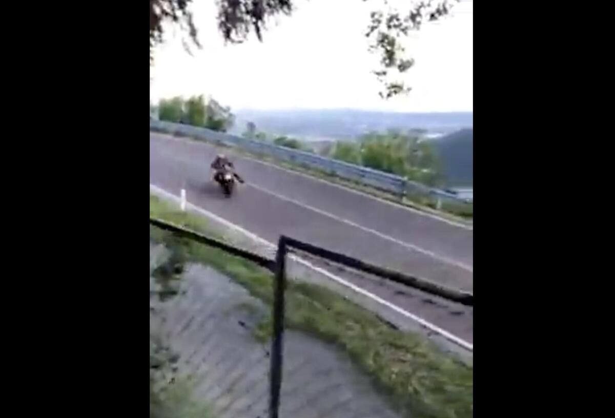 Sbaglia la curva e la moto finisce fuori strada [VIDEO VIRALE]