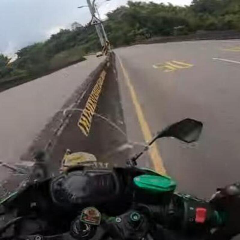 A raccontarlo sono le immagini girate dalla action cam di un motociclista che seguiva il collega, ritrovatosi a terra e nel "dirupo" che costeggia la stradina nonostante una velocità non certo sostenuta. Quando si va in moto può capitare, al di là dei controlli elettronici, dell’esperienza e delle dovute attenzioni.