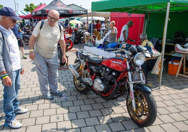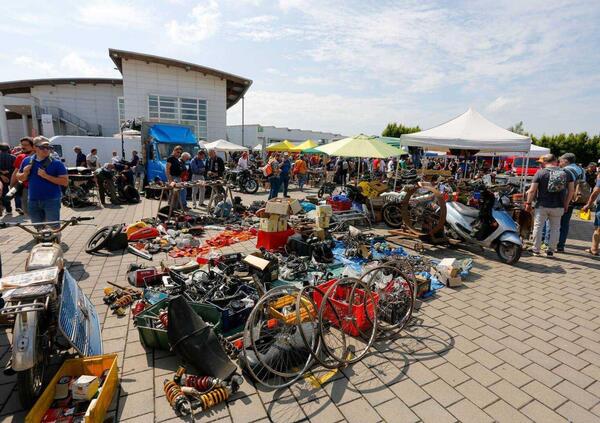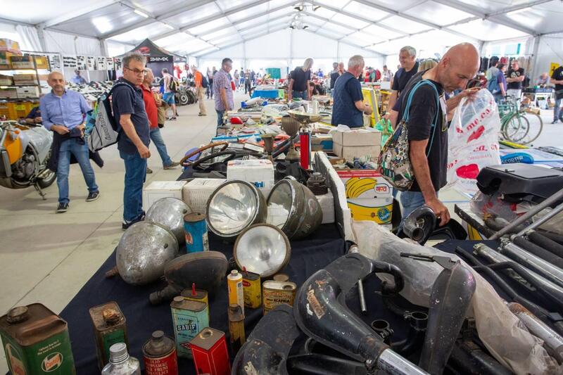 È così. Si passeggia con gli occhi che guardano sempre avanti, il più lontano possibile. Perché l’occhio deve arrivare per primo, e le gambe subito dietro, prima degli altri. All’inizio è curiosità o la motivazione di cercare un pezzo per il proprio mezzo d’epoca, poi il fascino della scoperta, della riapertura di un album personale della passione, la rilettura attraverso strati di conservazione o di ruggine. È allora che lo sguardo si trasforma in scanner. All’esperto, all’occhio allenato alla ricerca e alla scoperta non sfugge più nulla. E questo è il bello, il traguardo dell’orgoglio personale al mercato-mostra-scambio. Una necessità dell’anima, si potrebbe dire.