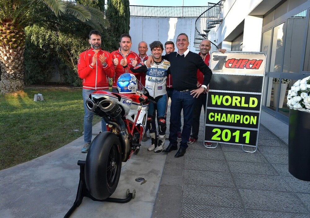 Per l’inaugurazione del suo spazio espositivo Genesio ha voluto accanto a sè i piloti che lo hanno accompagnato nella sua carriera di manager: primo tra tutti quel Carlos Checa col quale ha vissuto una stagione memorabile, il cui ricordo ancora provoca brividi di intensa emozione.