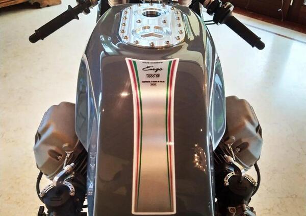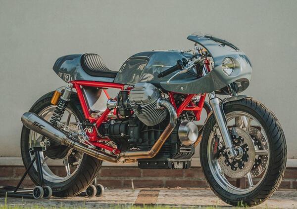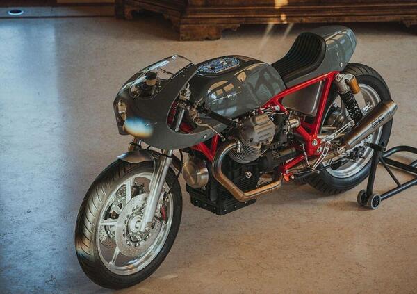 Questa special si deve a Massimo Rinchiuso, mente e braccio dell'officina Fuchs Workshop di Ravenna. Nasce da quattro casse che contenevano le parti di una Moto Guzzi 1000 SP del 1979: il proprietario avrebbe voluto restaurarla, ma poi ha deciso di metterla in vendita smontata.