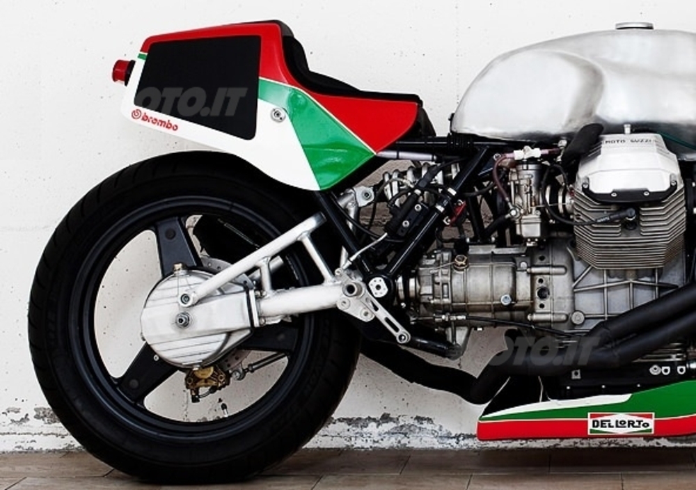 L'estetica di questa Guzzi, nata come Le Mans MkIV ed ultimata lo scorso anno, è sicuramente riuscitissima: muscolosa e aggressiva, trasforma un certo squilibrio fra i volumi in un elemento distintivo che sintetizza l'essenza delle moto da corsa dell'epoca. La carenatura in vetroresina è realizzata su misura ispirandosi liberamente alle Yamaha TZ da GP; il serbatoio è anch'esso realizzato in alluminio su misura, mentre le pedane sono la replica perfetta di unità montate sulle Bimota dell'epoca.