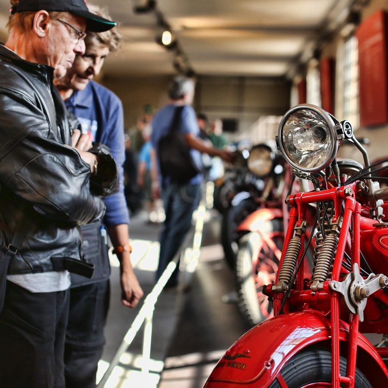 Trovare un posto dove poter parcheggiare la propria moto, difronte alla fabbrica, è stato quasi impossibile. Già di primo mattino il piazzale “profumava” di storia, di quel profumo che solo le vecchie Moto Guzzi degli anni 50 sanno avere. Abbiamo varcato il portone rosso di prima mattina, pronti per un tuffo nel passato all’interno del museo storico della fabbrica mandellese che suscita da sempre grande interesse tra gli appassionati. Impossibile non rimanere affascinati da tutte le motociclette esposte e dalla storia che ognuna di esse porta con se. A partire dai modelli mitici quali il Falcone, il Galletto, la famiglia delle V7, le sportive Le Mans e Imola, le Guzzi da competizione, capaci di conquistare 15 titoli iridati nel Motomondiale, fino alle attuali V7 e California 1400.