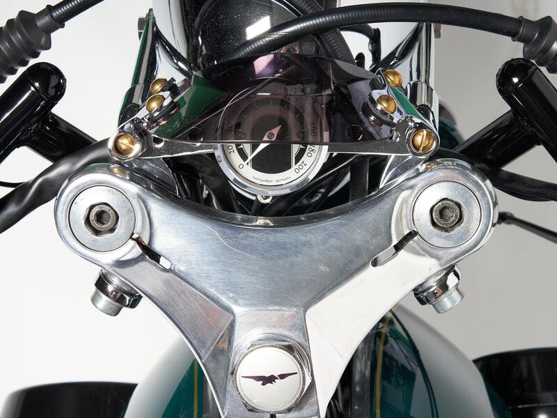 Il manubrio è un clip-on Tomaselli con piastre di sterzo originali, mentre il tachimetro rotondo a fondo bianco/nero è di Motogadget.