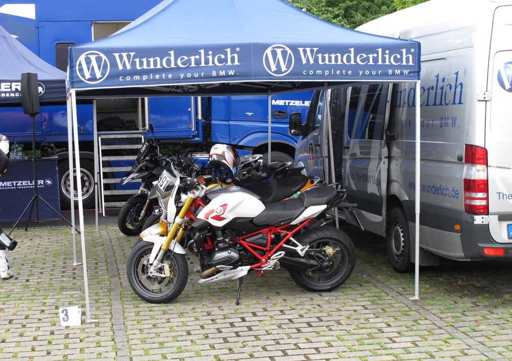 Il giorno seguente la sveglia suona prestissimo, sono su di giri, dopo colazione ci fiondiamo in circuito e raggiungiamo il gazebo della Wunderlich, la prima cosa che salta agli occhi sono ovviamente le moto che ci accompagneranno in questi due giorni, una BMW S1000RR, una S1000R è una R1200R, sono bellissime e tutte allestite con gli accessori prodotti da questa azienda.