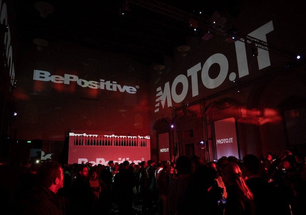 Ore 1:00. Tommy Vee abbassa la musica, in consolle arriva l’uomo nero della new gospel house music. Dreadlock a metà schiena, voce grossa come la sua giacca oversize, l’America di Cleveland nelle tonalità soul e RnB, e CeCe Rogers fa da intro alla cassa, che un minuto dà un nuovo ritmo ai caschi V Helmets X BePositive. Poi Moony, all’anagrafe Monica Bragato, altra grande interprete della musica dance-pop con i suoi ultimi successi. E ancora luci, house music, il logo di Moto.it che scorre sopra gli affreschi seicenteschi, the party goes on.