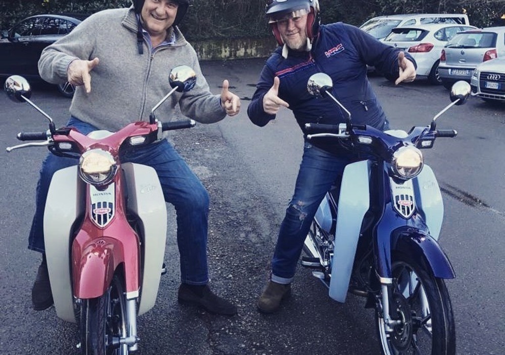Entrambi 60enni, entrambi due icone. Di chi parliamo? Di Gerry Scotti e del suo nuovo Honda Super Cub 125.