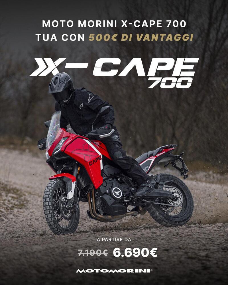 Non da meno la X-Cape 700, per i patiti della media cilindrata, con il suo bicilindrico parallelo frontemarcia da 693cc, 70cv e 68Nm; per tutte le sue versioni, sono previsti 500 euro di vantaggi immediati portano il prezzo listino a 6.690 euro. Equilibrio tra grinta, agilità e spirito avventuroso, è il jolly per neofiti e veterani.