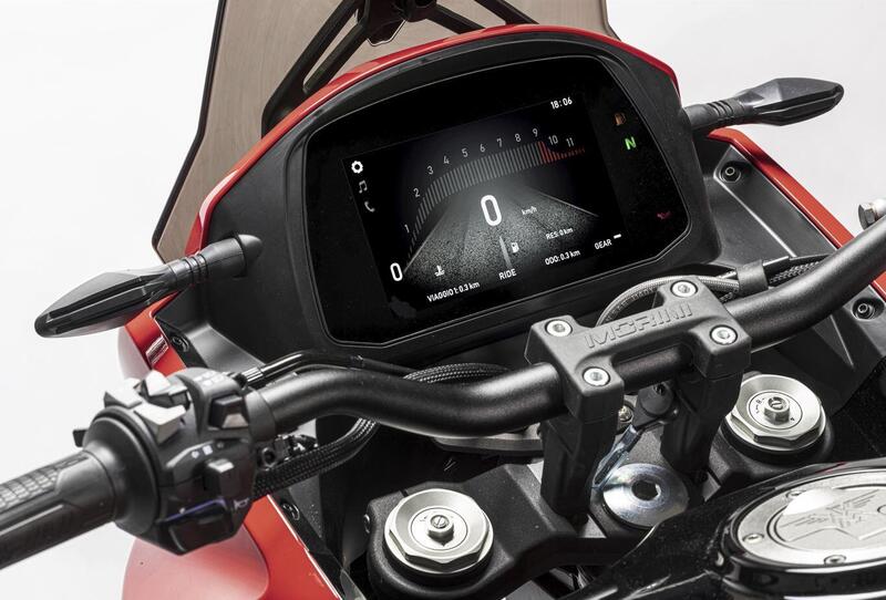 Per il resto l'enduro stradale Morini, con ruota anteriore da 19 pollici e posteriore da 17, conferma estetica, tecnica ed equipaggiamento della nota X-Cape 650 (trovate qui la nostra prova).