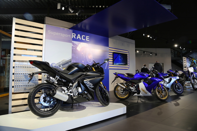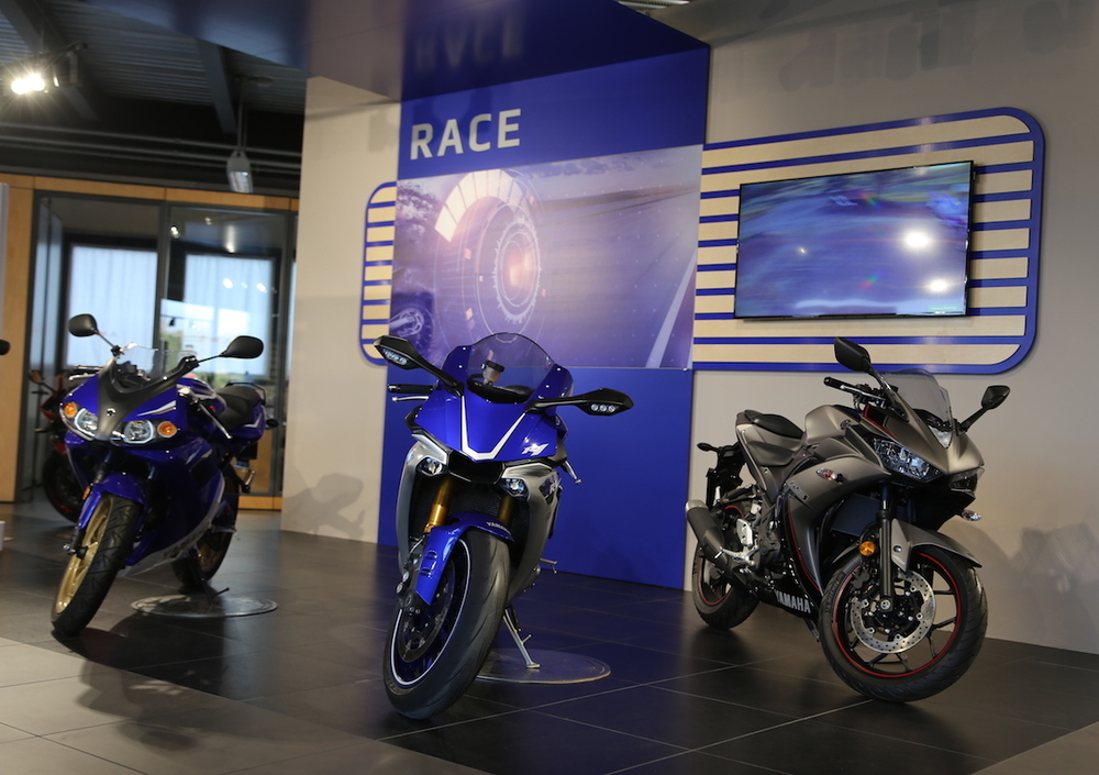 «In sostanza, tutta la disposizione ruota attorno alla strategia dei tre blocchi che rappresenta l’intento di Yamaha di offrire prodotti e servizi seguendo le motivazioni di acquisto dei nostri clienti: blocco Race legato ai prodotti “adrenalicini” come l’iconica R1, blocco Feel legato ai prodotti che esprimono “passione” come la MT-09 e infine il blocco Move legato ai prodotti per la mobilità urbana. Il tutto in un contesto dinamico, elegante, piacevole e ben illuminato».