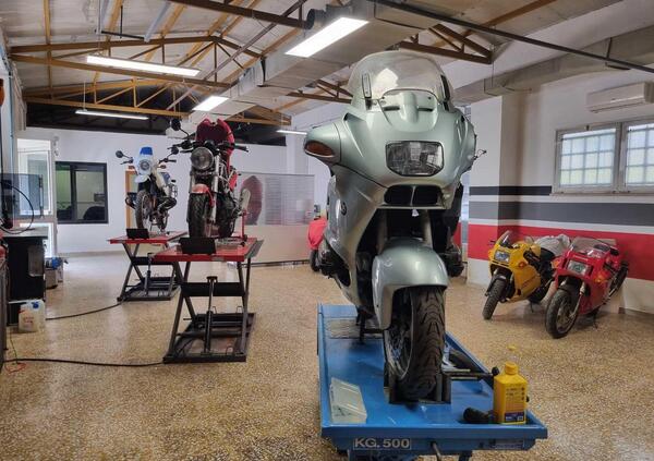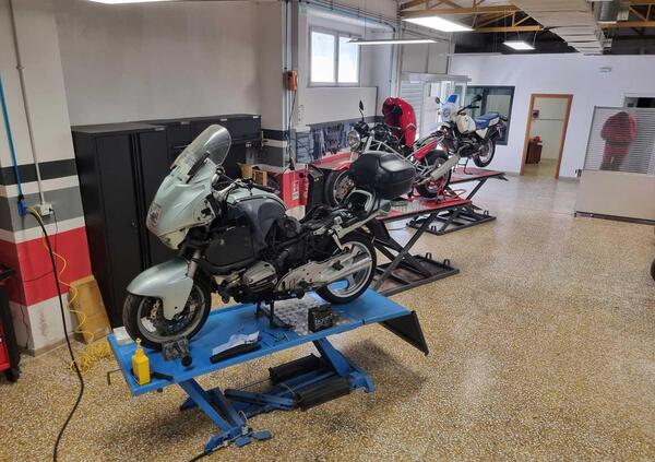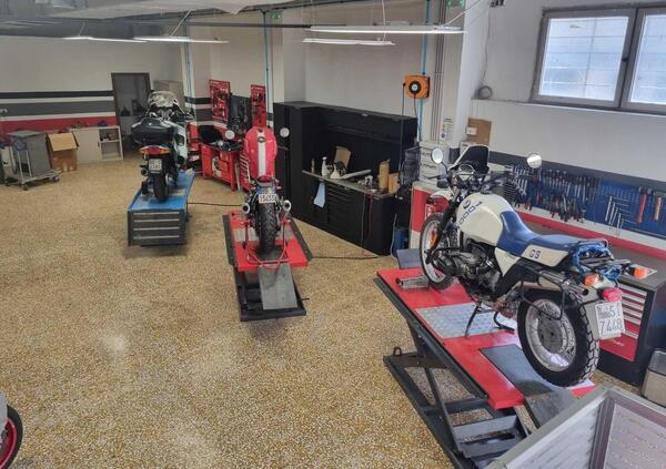 L'officina, che dispone di un'area coperta di circa 150 mq, cui si aggiungono una scoperta di circa 70 e il parcheggio privato antistante, è attrezzata con tre postazioni ed equipaggiata di tutta l'attrezzatura necessaria per offrire assistenza a moto di ogni età.