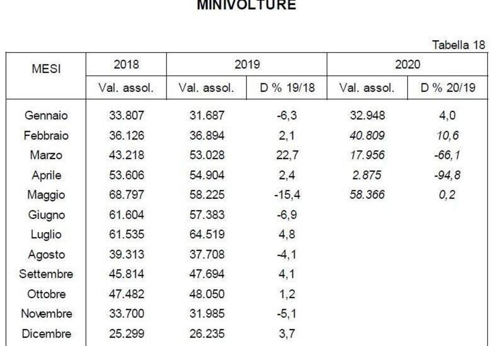 Va anche osservato che maggio 2019 segnò un -15,4%, ma in ogni caso c'è stato un piccolo incremento in un mese nel quale l'usato auto, in rapporto, ha invece perso il 30,3%.