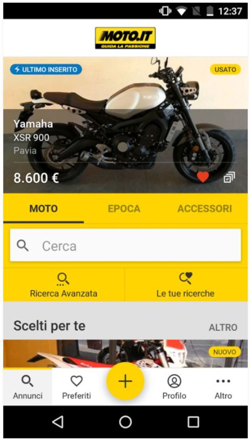 Come è noto Moto.it è il canale d'informazione del settore numero uno in Italia, consultato quotidianamente da un gran numero di appassionati. Ma su Moto.it sono molto visitate anche le pagine di annunci per la vendita e l'acquisto di moto nuove e usate, di moto d'epoca e di accessori. Per questo motivo è nata la nuova applicazione dedicata al mercato dell'usato rapida e intuitiva, indispensabile per trovare e confrontare le offerte del modello usato che si sta considerando, ma anche delle moto d'epoca e degli accessori. Attualmente si sono oltre 240.000 annunci fra i quali cercare, dai modelli recentissimi a quelli d'epoca, agli accessori per le vostre moto nuovi e usati. Non solo ma dall'App è possibile leggere i commenti di chi l'ha posseduta e potersi così fare un'idea precisa dell'acquisto, oppure fare domande al venditore, un po' come avviene su Amazon quando fate shopping. (scarica da Google Play - da App Store),