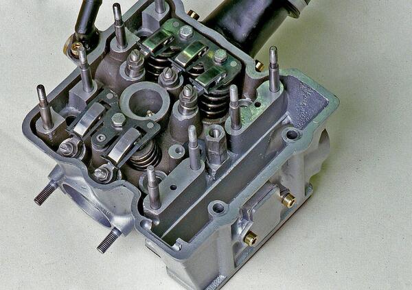 Il raffreddamento ad acqua, ormai adottato largamente, agevolava sicuramente le cose. L’afflusso di aria al cilindro e alla testa posteriori infatti non era ostacolato dal gruppo termico anteriore solo se si impiegava uno schema a L, che l’ing. Taglioni aveva scelto proprio per questa ragione per i bicilindrici Ducati fin dai primi anni Settanta.