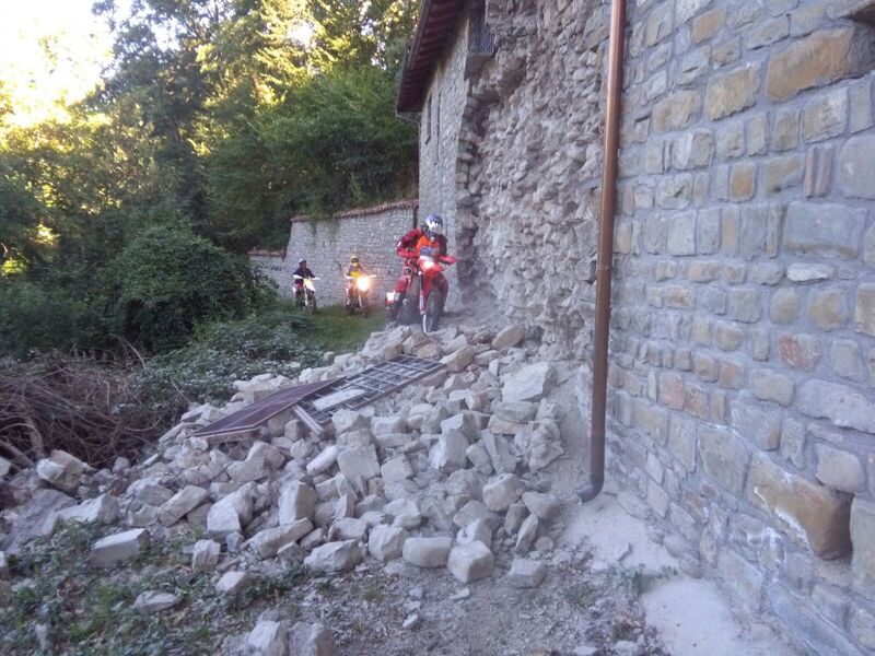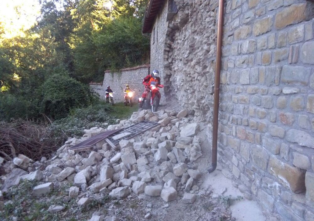 I sassi turbati dalla terra irrequieta. Le case che dopo secoli si piegano in cumuli di macerie, e i muri cari che diventano lapidi. Poi, nelle prime luci dell’alba, arrivano i soccorsi: Vigili del Fuoco, Protezione Civile, militari, medici e volontari. Tra di loro, sporchi di polvere e con il casco in testa, ci sono anche dei motociclisti. Hanno grossi zaini sulle spalle o cassette di plastica legate sulle loro moto da enduro. Il loro compito, nella tragedia del terremoto, è arrivare oltre il punto dove gli altri si fermano. In un angolo di una piazza distrutta o sotto un albero si accalcano chini su una cartina. Si dividono i compiti e poi partono per raggiungere i luoghi più isolati, dove i mezzi a quattro ruote non arrivano. Sono staffette e ricognitori. Caricano dottori e medicine. Portano soccorso, viveri o qualunque cosa sia necessaria.