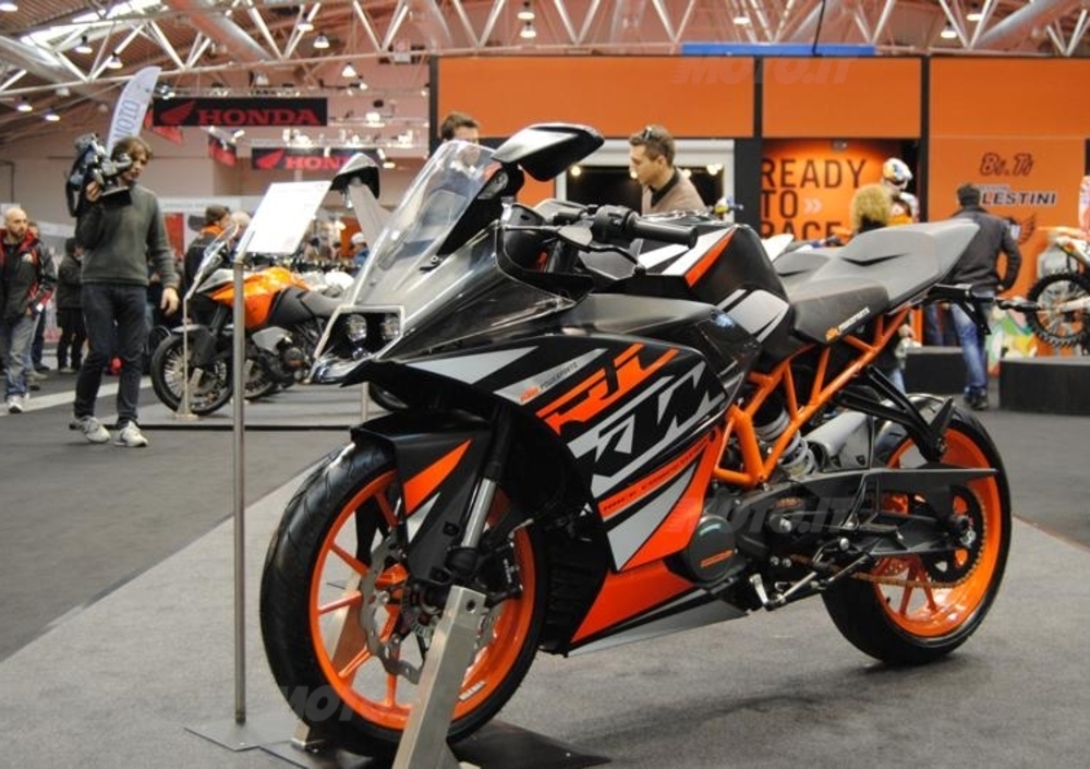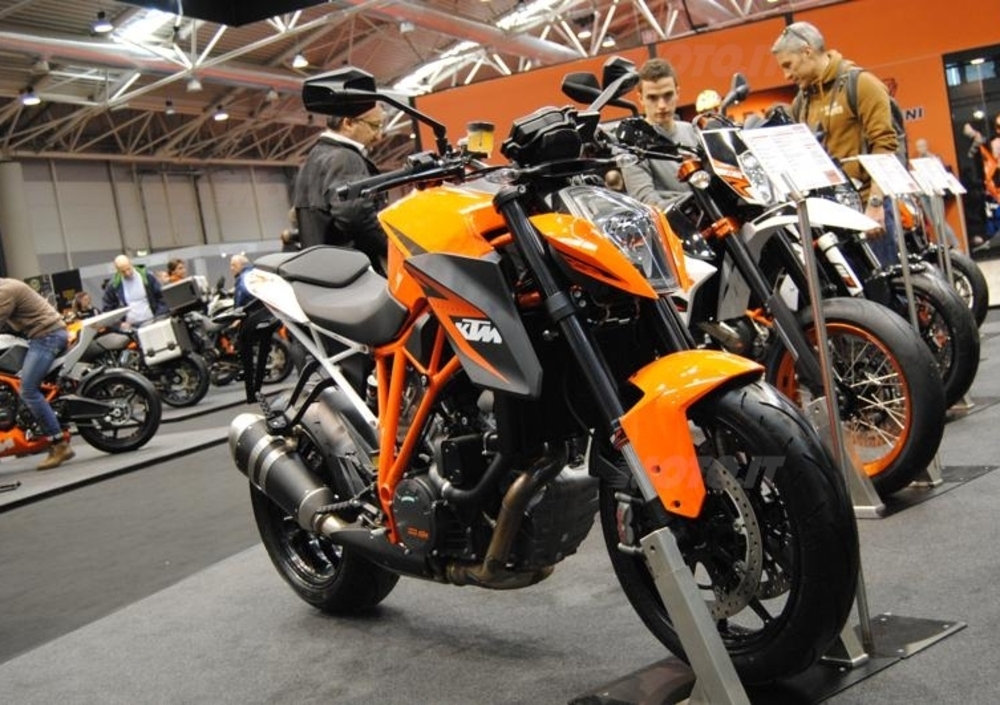 La dinamica KTM è arrivata alla Fiera di Roma con l'intera gamma 2014. Spicca su tutte la stupefacente naked 1290 Super Duke R, di cui qui potete leggere la prova. Il bicilindrico da 1.301 cc deriva da quello che equipaggia la RC8 e l’Adventure 1190, che però arriva a 1.195 cc, l'incremento è stato ottenuto aumentando l'alesaggio da 105 a 108 mm con la corsa che passa da 69 a 71 mm. Eroga la bellezza di 180 cavalli e pesa a secco soltanto 189 kg.