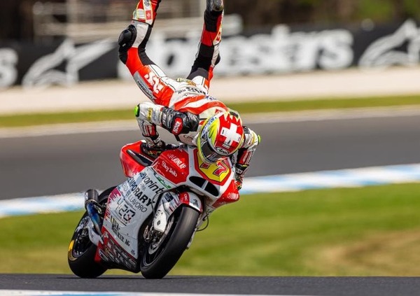 Evoluzione pazzesca anche per lo svizzero Dominique Aegerter in sella alla propria MV Agusta Forward, che nella Q1 di Moto2 durante Philip Island è uscito da una curva esibendosi in una verticale sul manubrio, un’acrobazia che ha catturato l’attenzione di tutti.
